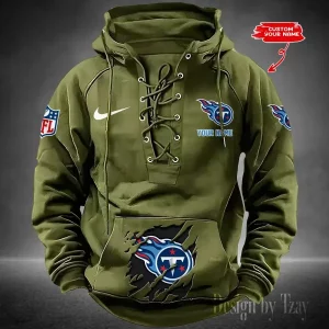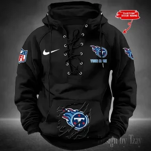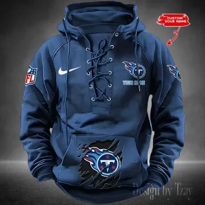Tennessee Titans Lace-Up Cross V-Neck Drawstring Hoodie