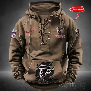 Atlanta Falcons Lace-Up Cross V-Neck Drawstring Hoodie