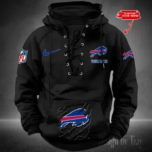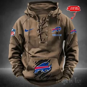 Buffalo Bills Lace-Up Cross V-Neck Drawstring Hoodie