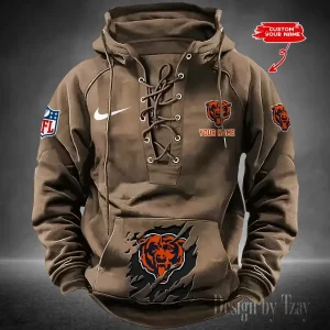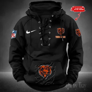 Chicago Bears Lace-Up Cross V-Neck Drawstring Hoodie