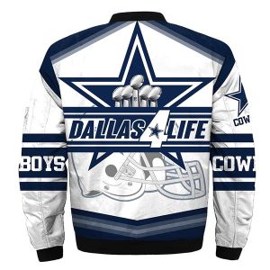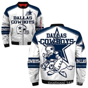 - This llight-weight Cowboys bomber jacket with a high collar, full-zip front, and side seam pockets completes a stylish look for cool weather.