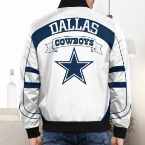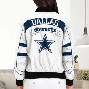 - This llight-weight Dallas Cowboys bomber jacket with a high collar, full-zip front, and side seam pockets completes a stylish look for cool weather.