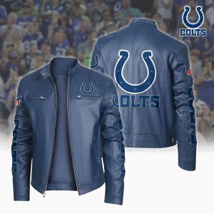 Indianapolis Colts Motorcycle Leather Jacket Custom Your Name, Sport Leather Jacket, Fan Gifts