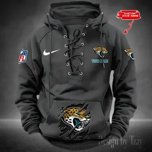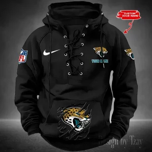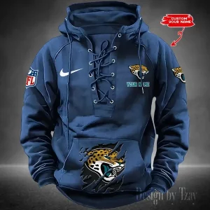 Jacksonville Jaguars Lace-Up Cross V-Neck Drawstring Hoodie
