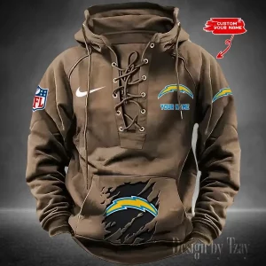 Los Angeles Chargers Lace-Up Cross V-Neck Drawstring Hoodie