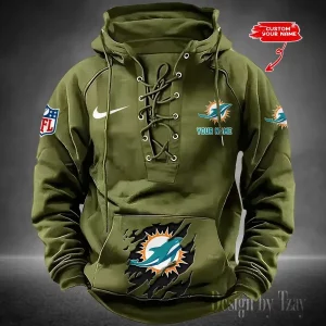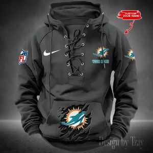 Miami Dolphins Lace-Up Cross V-Neck Drawstring Hoodie