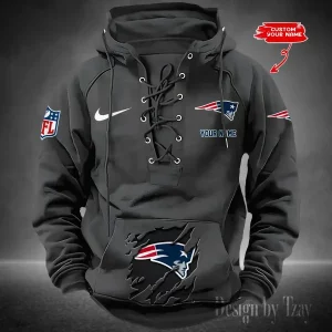 New England Patriots Lace-Up Cross V-Neck Drawstring Hoodie