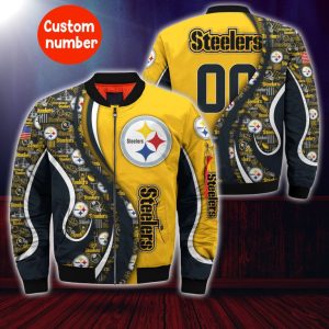 Hi there! You are looking at our Pittsburgh Steelers bomber jackets. These styles are unique, made with love, and they are perfect accessories for your outfit. The Pittsburgh Steelers logo on the jackets makes them a perfect item for any Steelers fan.