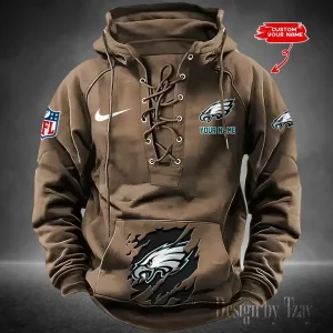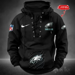 Philadelphia Eagles Lace-Up Cross V-Neck Drawstring Hoodie