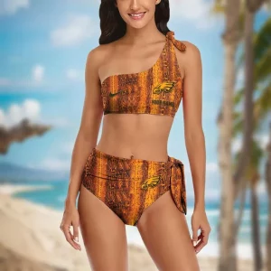 Women’s One-shoulder Two Piece Swimsuit Set Custom Your Name, Bikini Suit Set, Football Gift EHIVM-03281513